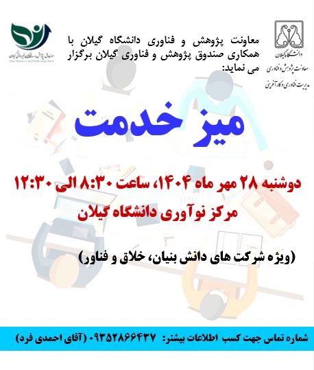 برگزاری کارگاه های مشترک معاونت پژوهش و فناوری دانشگاه و صندوق پژوهش و فناوری گیلان